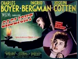 Credits: Director: George Cukor; screenwriters: John Van Druten, Walter Reisch; Cast: Charles Boyer, Ingrid Bergman. Joseph Cotten, Dame May Whitty, Angela Lansbury IMDB: Gaslight (1944)