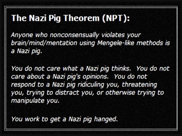 Anyone who nonconsensually violates your brain/mind/mentation using Mengele-like methods is a Nazi pig.