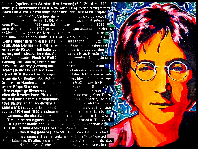 John Winston Ono Lennon, MBE (9 October 1940 – 8 December 1980) was an English musician and singer-songwriter who rose to worldwide fame as one of the founding members of The Beatles, one of the most commercially successful and critically acclaimed acts in the history of popular music. Along with fellow Beatle Paul McCartney, he formed one of the most successful songwriting partnerships of the 20th century. Born and raised in Liverpool, Lennon became involved as a teenager in the skiffle craze; his first band, The Quarrymen, evolved into The Beatles in 1960. As the group disintegrated towards the end of the decade, Lennon embarked on a solo career that produced the critically acclaimed albums John Lennon/Plastic Ono Band and Imagine, and iconic songs such as “Give Peace a Chance” and “Imagine”. Lennon disengaged himself from the music business in 1975 to devote time to his family, but re-emerged in 1980 with a new album, Double Fantasy. He was murdered three weeks after its release. Lennon revealed a rebellious nature and acerbic wit in his music, his writing, his drawings, on film, and in interviews, and he became controversial through his political and peace activism. He moved to New York City in 1971, where his criticism of the Vietnam War resulted in a lengthy attempt by Richard Nixon’s administration to deport him, while his songs were adopted as anthems by the anti-war movement. As of 2010, Lennon’s solo album sales in the United States exceed 14 million units, and as writer, co-writer or performer, he is responsible for 25 number-one singles on the US Hot 100 chart. In 2002, a BBC poll on the 100 Greatest Britons voted him eighth, and in 2008, Rolling Stone ranked him the fifth-greatest singer of all-time. He was posthumously inducted into the Songwriters Hall of Fame in 1987 and into the Rock and Roll Hall of Fame in 1994 (Wikepedia).